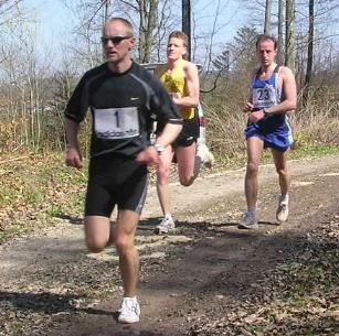 1 100 m bei den bezirksoffenen Kreiswaldlaufmeisterschaften in Hochdorf: Nach etwa 500 m ist der spätere Sieger Uli Ohngemach schon deutlich in Front, Gunther liegt auf Platz 2 vor Armin, dies bleibt so bis ins Ziel.