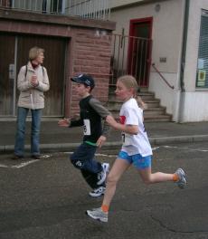 Noch 50 Meter: Henryk ohne Schwäche unglaubliche 1:20:18 - Jochen kämpferisch auf den letzten Kilometern an "Altstar" Jochen Hustig vorbei: 1:22:50 sehr stark.