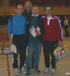 14 Läufer: Gunther, Armin, Isa, Günter (1 h), Kurt (1 h), Jürgen, Ralf, Friedemann, Andrea Niethammer, Dagmar Spahn, Werner Fessler, Rüdiger Weckmann, Manfred Heiland, Herbert Nothacker. 3 Spaziergänger: Willi (Knochenhautentzündung), Ursula (Rüdiger), Elvira (Werner). 24 Kaffeetrinker: Petra, Gaby, Silvia und Jannik, Anne, Sarah, Karin und Roland, Emil, Michael Beck, Uwe Vischer (Abschiedsbesuch), Gunther, Armin, Isa, Günter, Kurt, Jürgen, Ralf, Friedemann, Werner Fessler, Rüdiger Weckmann. In Abwesendheit wurde Henryk Richter zum "Ostelsheimer Läufer des Jahres geehrt". Die Pokale für die fleißigsten Dienstagsläufer konnten Armin und Gunther persönlich entgegennehmen. Das Team Jürgen, Petra, Friedemann mit ihren Experten Willi, Kurt (beide ohne Einsatz) und Gunther konnten ebenso die "Million" beim Quiz über Ostelsheimer Läufer/innen erreichen, wie Rüdiger, Willi und Werner mit ihren Experten Uwe, Kurt (beide ohne Einsatz) und wiederum Gunther den Riesengewinn bei den Rekorden und Rekordlern schafften. - Ein paar Bilder und ein kurzes Hineinschauen in den Diefenbachlauf 1991 rundeten den gelungenen Tag ab. Leider wurde viel Kaffee "den Bach na" geschüttet, weil der Besuch heuer etwas verhalten war. Vielen Dank an den diesmal verhinderten Arnold für den herrlichen Pott. Für Tanja Kies konnten an diesem Tag trotzdem 55 Euro gesammelt werden, ich habe sie noch heute mit einem Rest vom letzten Läuferabend 2005 (18 Euro) überwiesen. - Ob es 2007 wieder einen Freundschaftslauf geben wird kann ich heute noch nicht sagen.