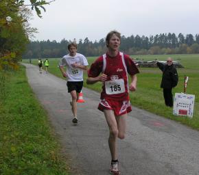 Start zum Rennen über 5 und 10 Kilometer: Sergio in Front und als erster im Ziel. - Jens 350 Meter vor dem Ziel.