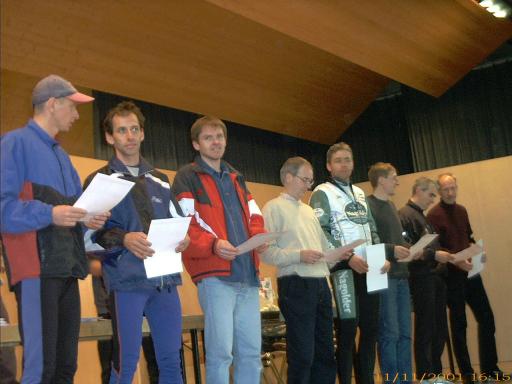 M 50: v. l. Leider kopflos der Sieger Rudolf Pletzer, dann Edmund Stauch, Manfred Spiller, Eugen Maier, Günter Krehl, Anita Bayha und mit dem Rücken zum Fotograph Karl-Heinz Scheder.