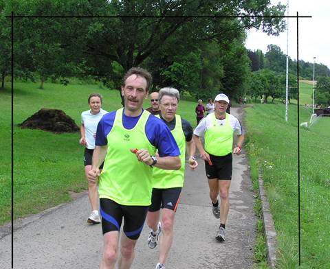 Emil (2. von links) beim Freundschaftslauf im Tennental - Emil bei Kurts Feier zum 50. Geburtstag 2003.
