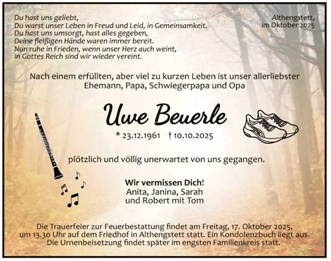 Wir trauern um unseren Laufkameraden Uwe Beuerle (* 23.12. 1961 - + 10.10. 2025)